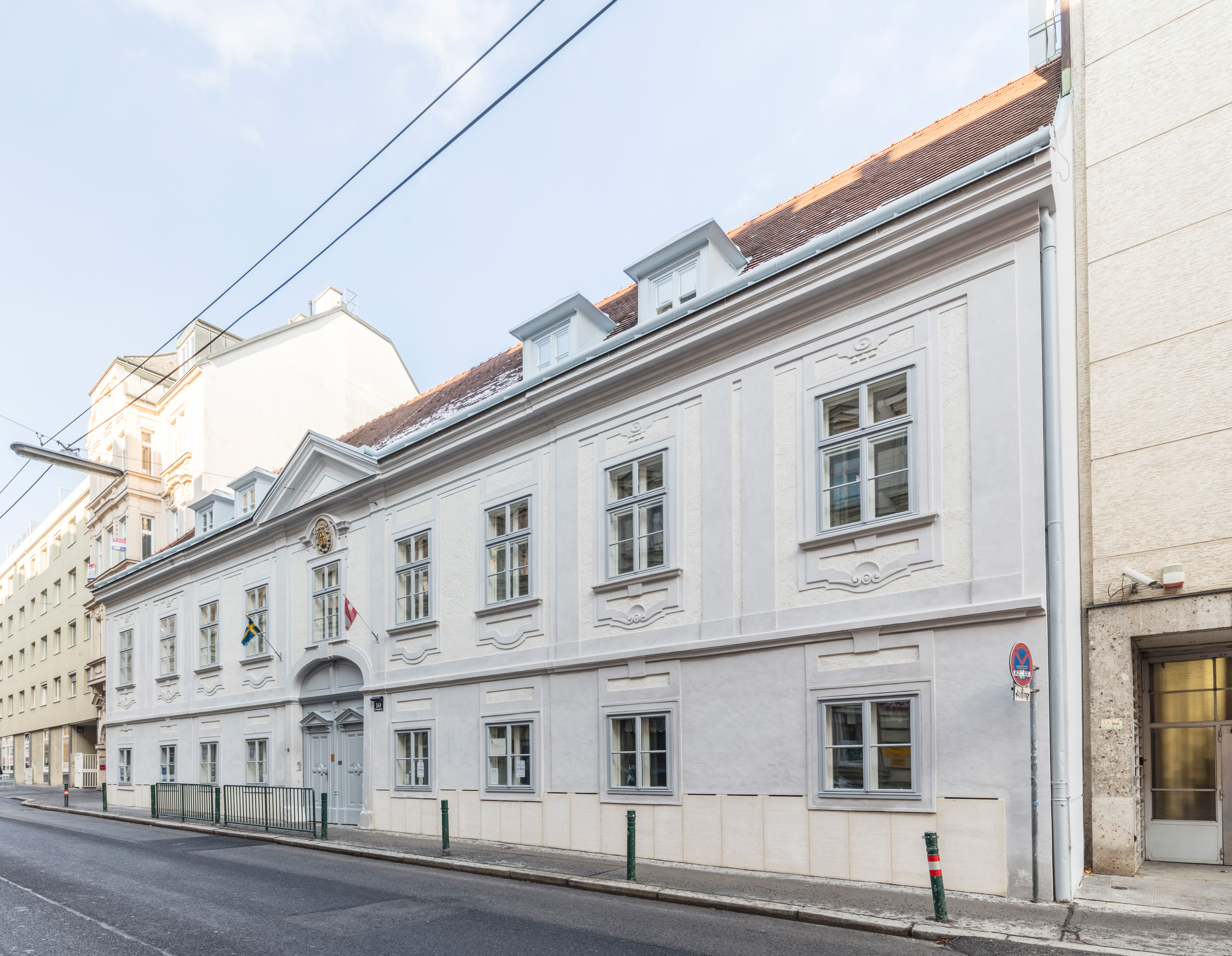 First documented in 1582, the Barnabitenfreihof is the oldest building in the district of Währing. The religious order purchased the former farmstead from Countess Lamberg and used it as its official residence until 1875. While the actual chapel was deconsecrated, the former Sala Terrena (16th century) has served as a sacred building since 1986 for the Church of Sweden in Vienna. There is a two-storey garden house in the interior courtyard. Meanwhile revitalised, the building has been preserved in its original state apart from a small number of alterations. In 2017, the ensemble was restored and the façade was returned to its original colour scheme. Parts of the premises were adapted as a residential building.